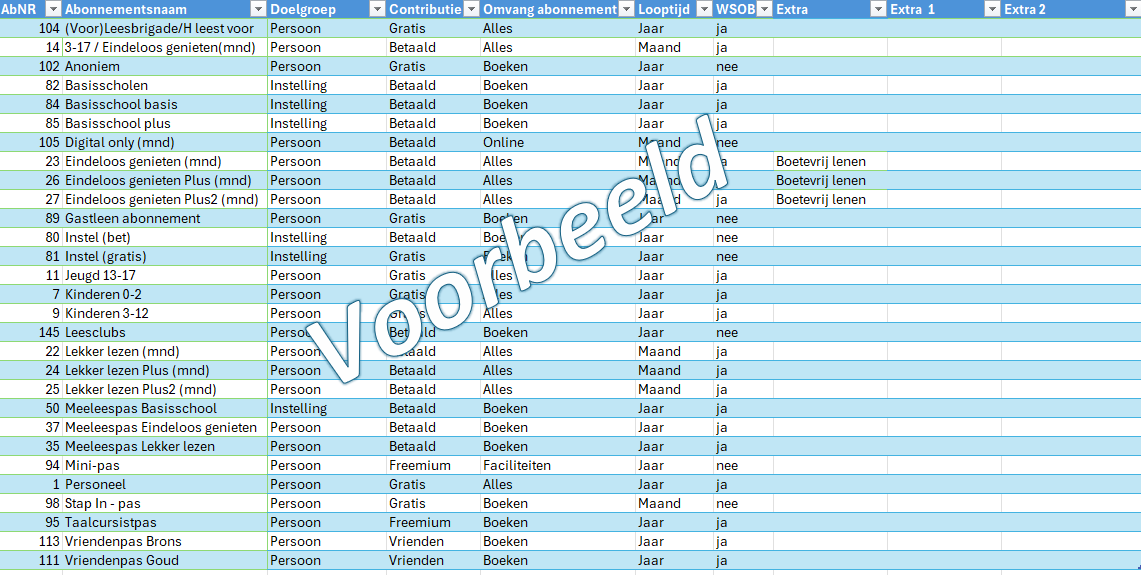 Wil je ermee aan de slag als Wise-bibliotheek op de GBS? Pak het ledenbestand van de SDI-basisset en kopieer de abonnementsnummers en -namen en de vestigingsnummers en -namen in het bestand. Dan kun je beginnen met invullen. Werken jullie met een ander systeem? Gebruik je lijst met momenteel actieve abonnementen en vestigingen als basis.